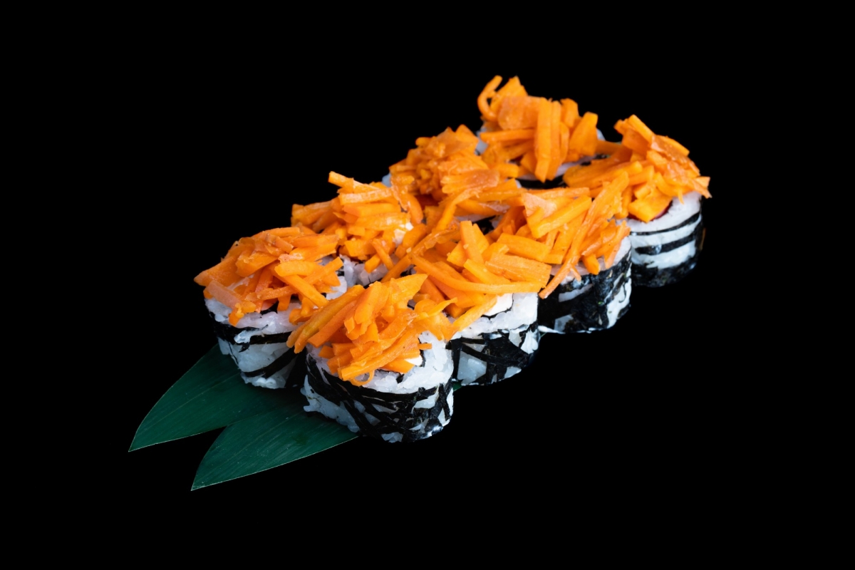 Ролл с курочкой, болгарским перцем, сливочным сыром и пикантной морковкой по-корейски